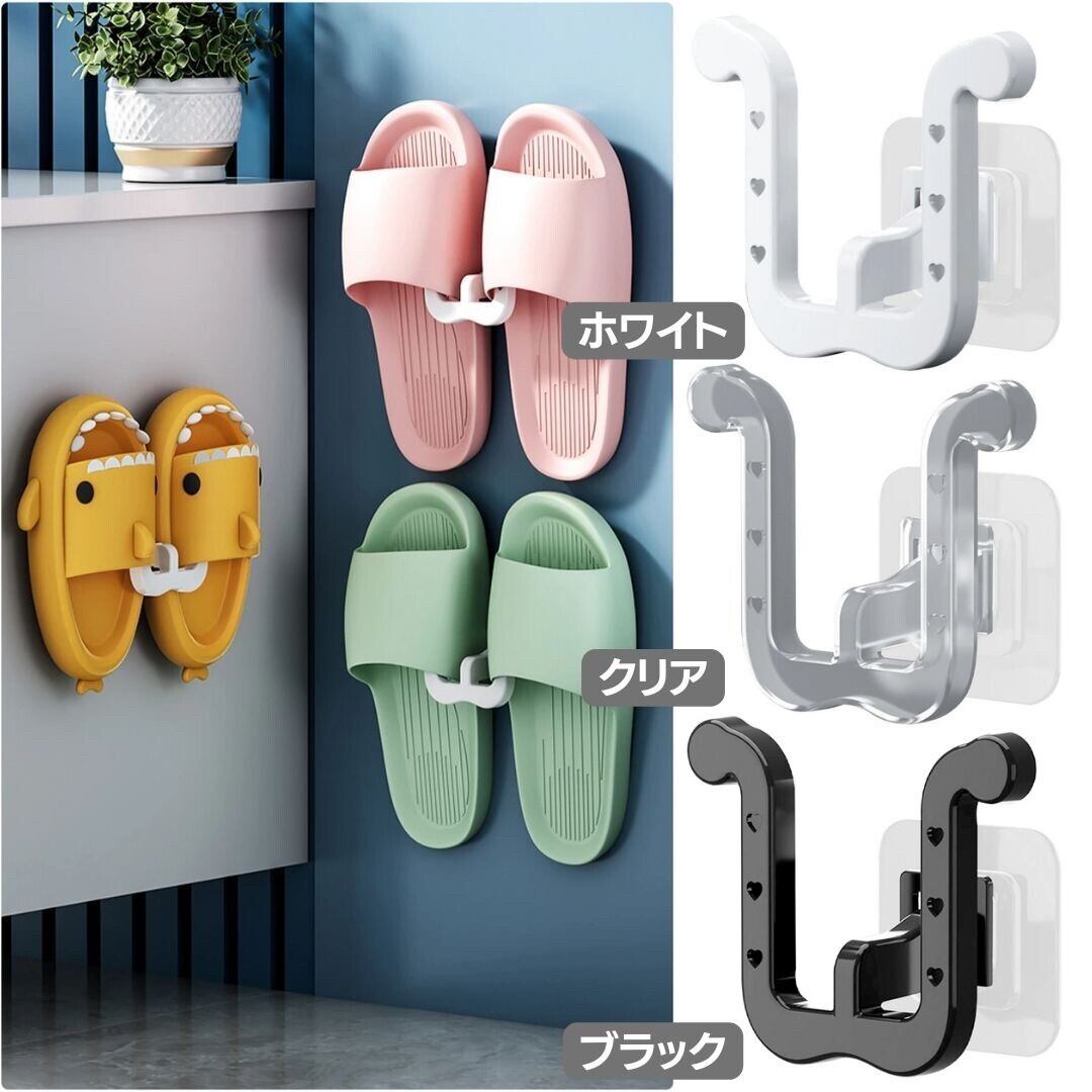 スリッパフック シューズフック 1個 粘着フック 全3カラー スリッパラック ハンガー 両面テープ 強力