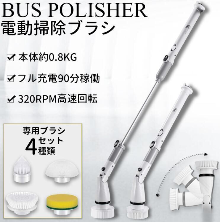 ipx6 防水 320RPM 4000mAH お風呂 ポリッシャー コードレス 充電式 電動 ブラシ 水洗い可 お風呂掃除