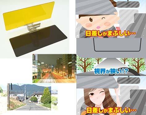 日差し用・夜用と切替簡単で眩しい光をいつでも軽減。