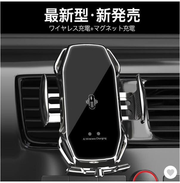 ワイヤレス 充電器 車 車載 スマホホルダー 置くだけ充電 QI 自動開閉式 iPhone 貼り付け 15W