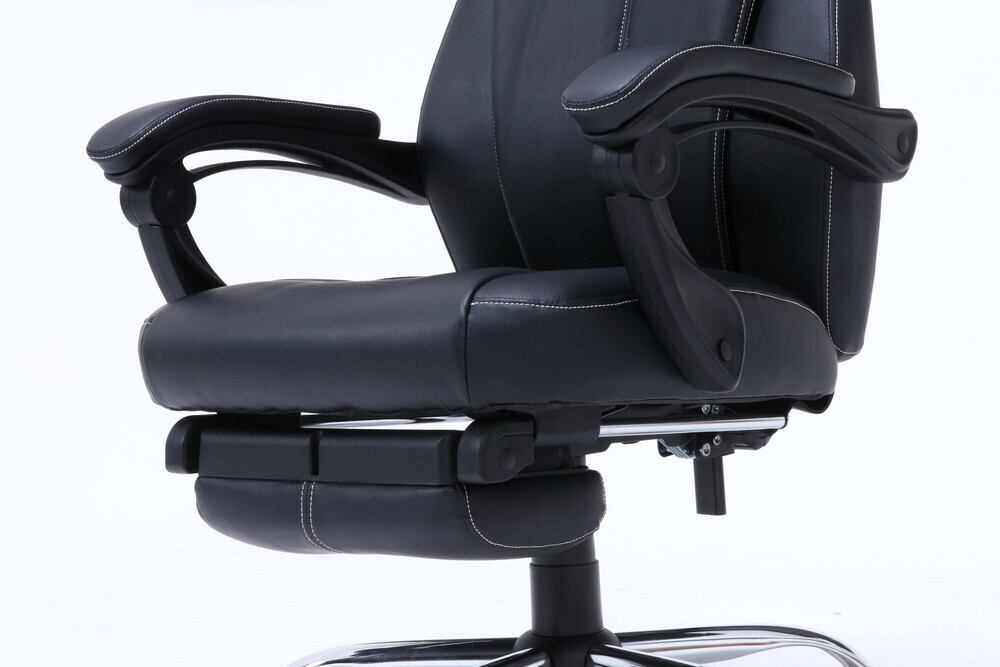 リラックスタイムに嬉しい「140度リクライニング」。〈br〉肘掛けの角度も連動します。足をゆったり伸ばせるフットレスト付き。〈br〉格納式なので、使わない時も邪魔になりません。肌触りのよいPUレザーと柔らかなクッションが、体をしっかりと包み込む、快適な座り心地。シートハイ42~50cmの昇降機能付き。〈br〉レバーの簡単な操作で高さを調整できます。男性でもゆったりと寄りかかれる、63cmのハイバック。PUレザーの質感とシックなカラーリングが、自宅にもオフィスにもマッチする上質なデザイン。シート高さ420~500mm・たっぷりクッションのアームレスト・ロッキング機能