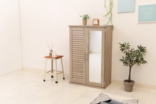 通気性の良いルーバー仕様!ミラー付きシューズボックス