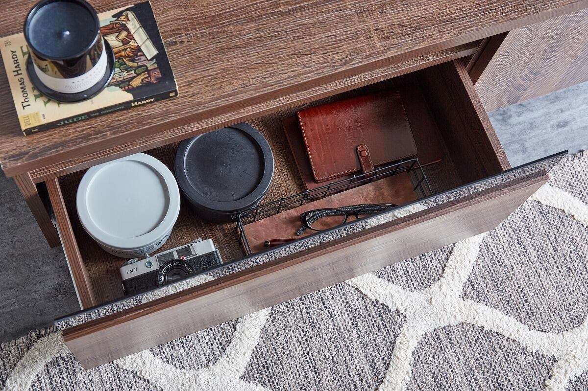 扉の取っ手や木のつなぎ目などをできる限り無くしたフラットな外観が、スタイリッシュで美しいテレビボード