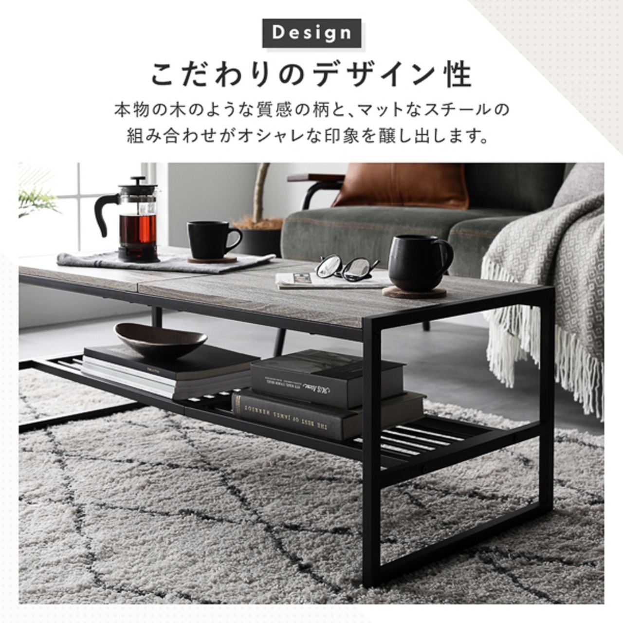 ローテーブル 単品 幅105cm 収納棚付き スチール デザイン センターテーブル インテリア家具